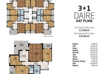3+1 :BRÜT ALAN 137 NET ALAN 117 M2